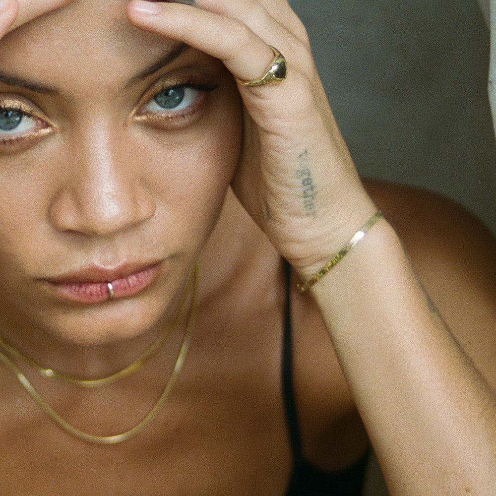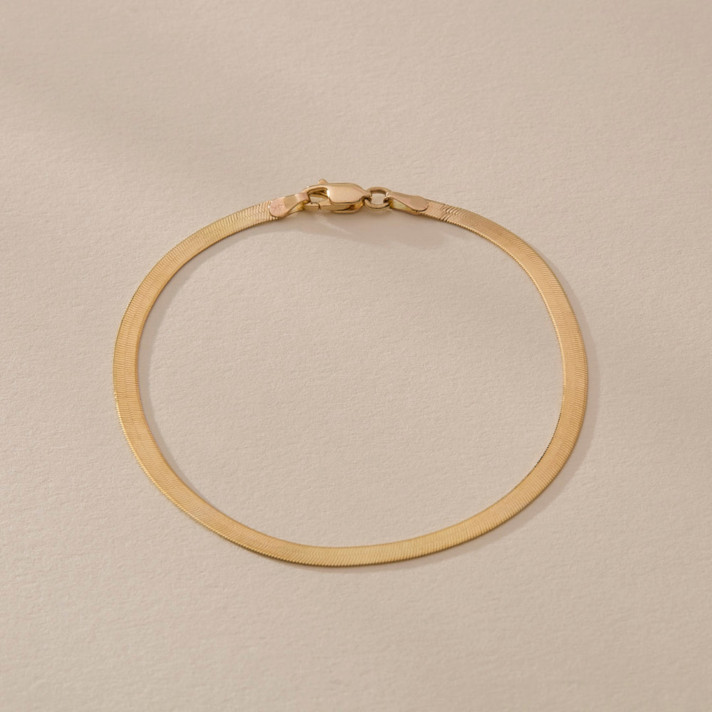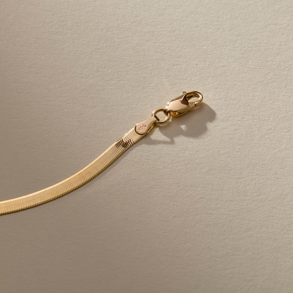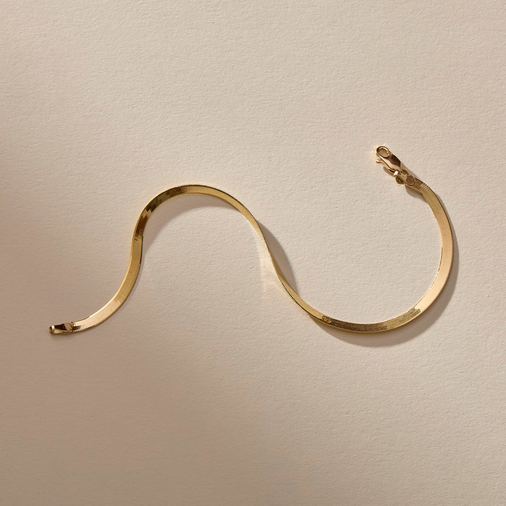 Our delicate and timeless Fehu Herringbone Bracelet is crafted with uncompromising quality. This piece is ethically made in the USA from recycled 14k solid gold, ensuring not only its beauty but also its sustainability.