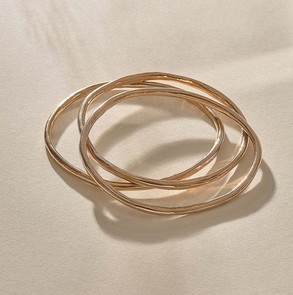 Organically shaped and hand polished with a nice weight, these bangles are earthy, rustic and make the most beautiful sounds as they clink together.