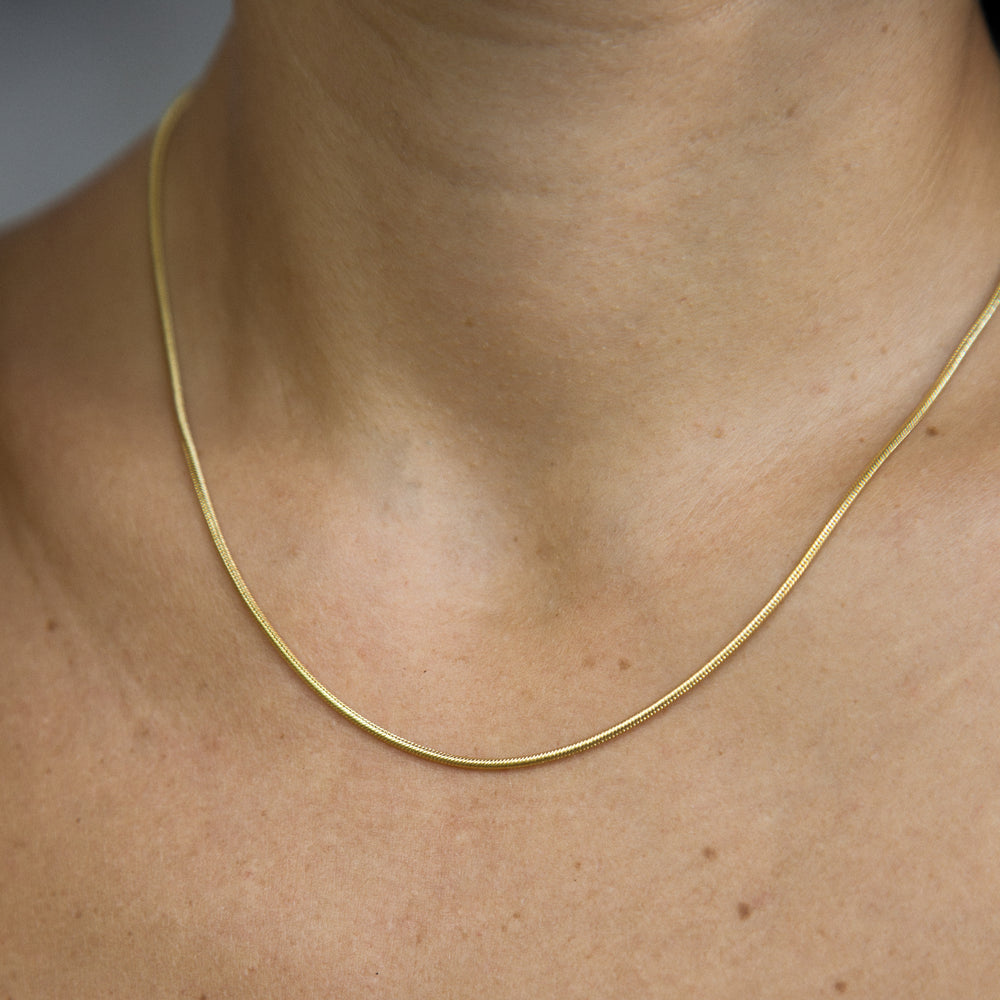 Meticulously crafted from recycled 14k gold, this glowing snake chain necklace elevates your style with a touch of sensuality.