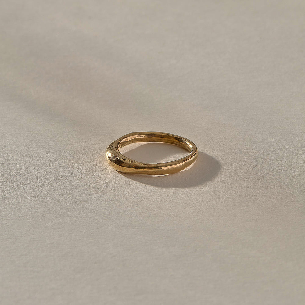 Organically shaped and hand polished. This ring can be worn alone or stacked with others to create an imperfect balance.
